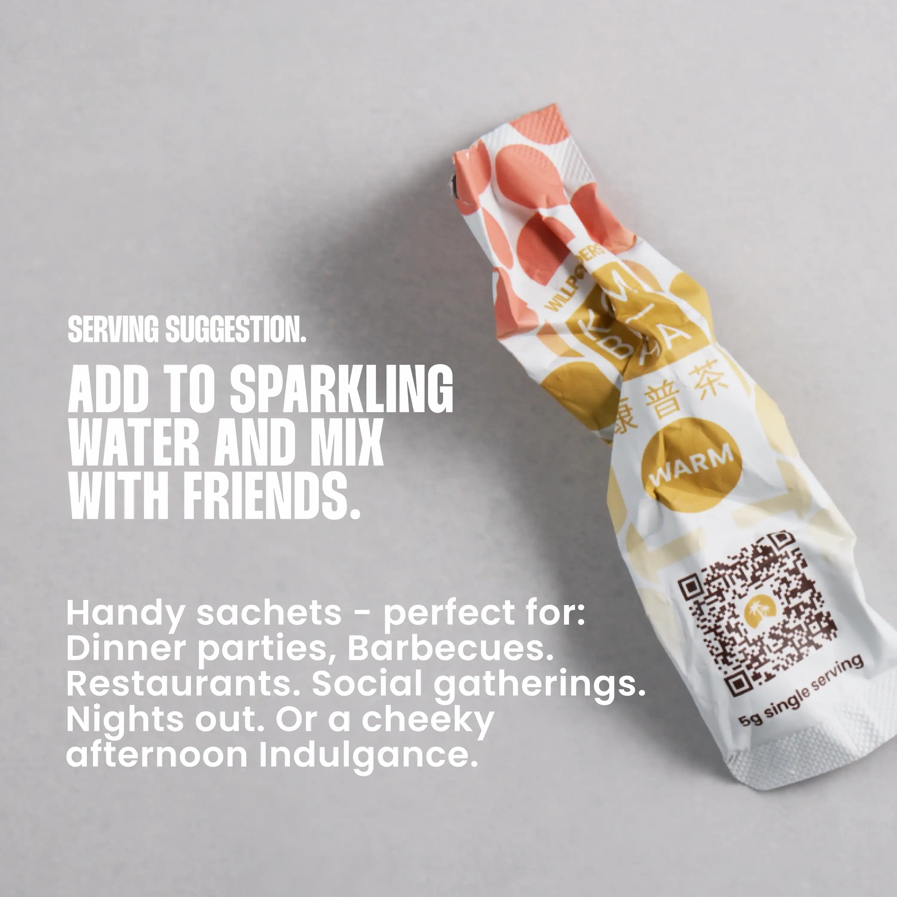 Unlike most Kombuchas, our Warm Kombucha recipe isn't riddled with sugar, nor will you have to carry around a clunky can or bottle. Perfectly packaged in 15x 5g sachets that can be easily mixed into water, you can always have some gut love in your back pocket.
