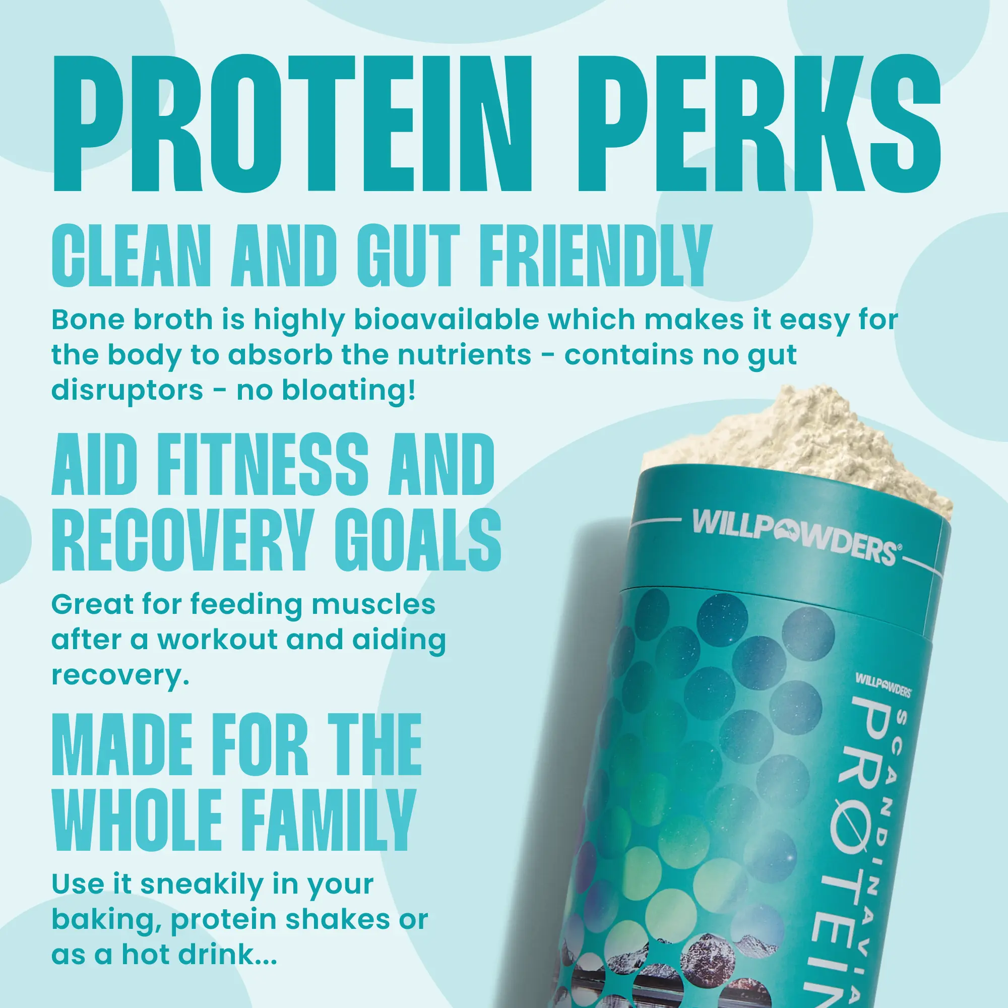 Our complete natural protein powder isn't just a supplement; it's a foundation for optimal health. It features bone broth sourced from grass-fed Scandinavian cattle, slow-simmered for over 36 hours and then dehydrated to lock in the most bioavailable amino acid profile. This ancient powerhouse delivers essential amino acids like glycine and proline, crucial for collagen synthesis, gut health, joint support, and their potent antioxidant and anti-inflammatory benefits.